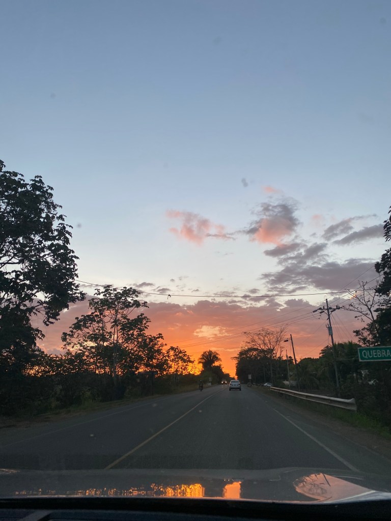 As we were heading back from the waterfall around 5:45 we got a look at a beautiful orange sunset.