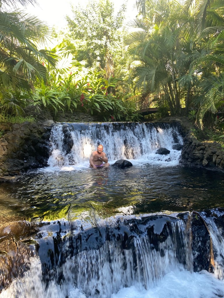 Today was the big surprise day that dad had been planning. Mason and I both had no idea what we were going to experience today. We woke up at 9:00, got our stuff together, and left the house. We arrived at a resort and we were kind of confused. It turns out, this was the surprise. A day of relaxation at the thermal pools heated by the volcano in an amazing resort. We got lunch and hung out in the water all day.