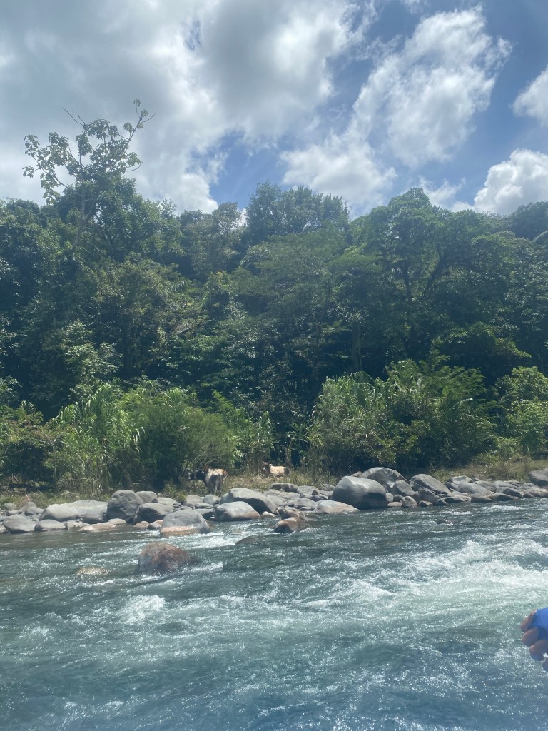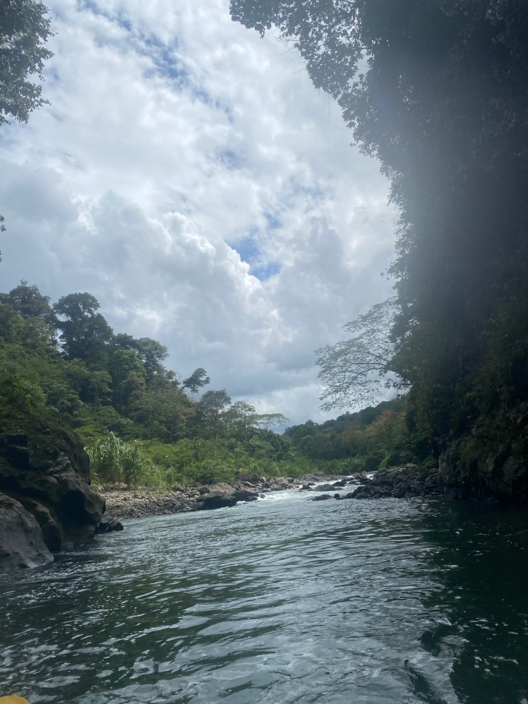 On Friday afternoon we drove south east from LaFortuna to pacuare river, we stayed in a cute in a little cabin with bunk beds! That night we went out for dinner, headed back to the cabin and got to sleep early. We woke up the next morning bright and early, got our stuff together and we had breakfast waiting for us right near our cabin. We headed to the river, got all the rafting gear and got out on to the water. We rafted for a few hours with such beautiful weather. After those few hours we reached where we would be staying the night. We got off the raft and brought our stuff up to the place. We had such a great view! Our tour guides made us the most amazing lunch and dinner that evening. We hung out for a while in the rocking chairs and hammocks before going to sleep. The next morning we woke up had a good, filling breakfast and headed back to the river. We got on the raft and rafted for a few more hours. We got to go down some rapids and between some canyons. It was pretty amazing!